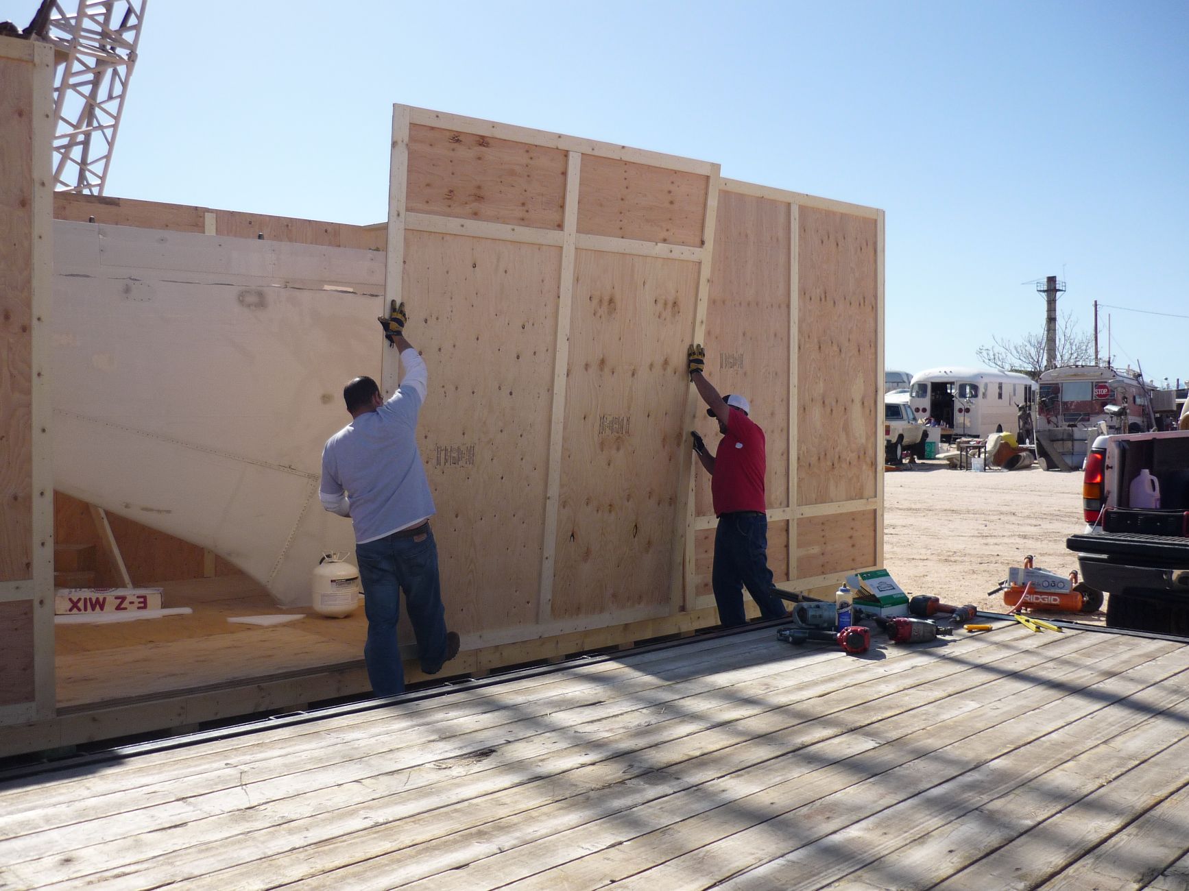 Crating aircraft was one of the most difficult crating skills we had to learn to master. A wise man once told us on day one: “Boys, this here is a flying soda can.” This explanation of an aircraft’s fragility and strength quickly got our attention. He taught us the necessity of exacting cradles and placement to packcage these oxymoronic parts. The points of attachment are incredibly strong and the rest is easily damaged if simply touched improperly; however, the whole thing is incredibly resilient once in the air. This wise man now calls upon us for every job and has our undying admiration and respect. Thank you, Dave; you made us better at every aspect of our craft.
